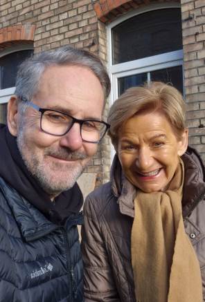 Wir danken Michael Baumgart für die Überlassung der Werke seines Vaters und des Wappenschildes. Die Vorstandsmitglieder Marlies Denne und Hermann Grundhöfer nahmen die Geschenke in Empfang. Hermannn Grundhöfer führte Herrn Baumgart durch das Bahnhofsgebäude und zeigte ihm den Fortschritt der Arbeiten.