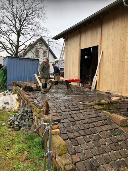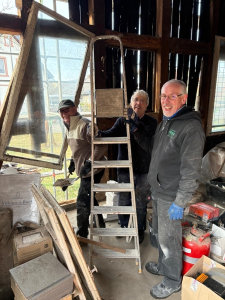 Die Schuppenwand, das Gerüst, die Tür zur Küche, die Heizung und die Teeküche waren Schwerpunkt unserer Arbeiten.