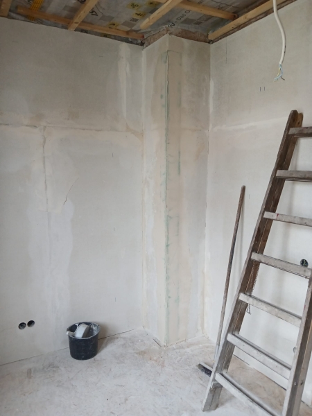 Mit der Grundierung der Gipskartonplatten wurde begonnen.