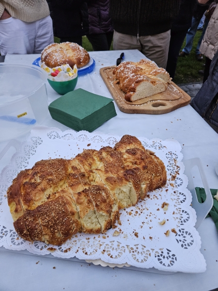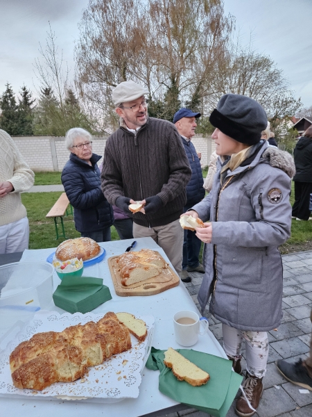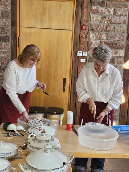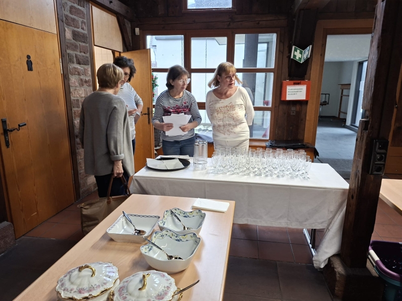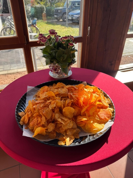 Und natürlich gab es etwas auf den Teller: Chips und Sekt, eine leckere Kartoffelsuppe, Sauerkraut mit Saumagen und Brot sowie zum süßen Finale ein von den weiblichen Mitgliedern des Vereins selbstgebackenen Kartoffel-Rührkuchen mit allerlei feinen Gewürzen abgerundet und auf dem Teller begleitet von frischem, selbstgemachtem Apfelmus. Am Herd standen Bernhard und Kerstin Paul (früher „Adler“ Dudenhofen). Roland Lösch („Pfälzer Hof“, Mechtersheim) unterstützte das Ehepaar. Ein Kartoffelschnaps sicherte am Ende allen Gästen die gute Verdauung. Ein Helferteam aus eifrigen KHV-Mitgliedern trug die Gerichte auf und sorgte sofort für Nachschub, wenn etwas am Tisch fehlte.