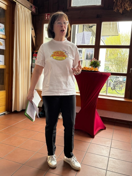 KHV-Mitglied Gisela Horix, diplomierte Agraringenieurin, präsentierte locker-flockig Daten, Zahlen und Fakten über die etwa 5000 heute weltweit bekannten Kartoffelsorten. Die Expertin ließ damit die Gäste ein ums andere Mal staunen. Jeder Tisch durfte zwischen den einzelnen Gängen die 15 Rätselfragen zum Thema auf einem Blatt Papier lösen. Jeder und jede am schnellsten Tisch ergatterte als Lohn einen großen Beutel Kartoffel.